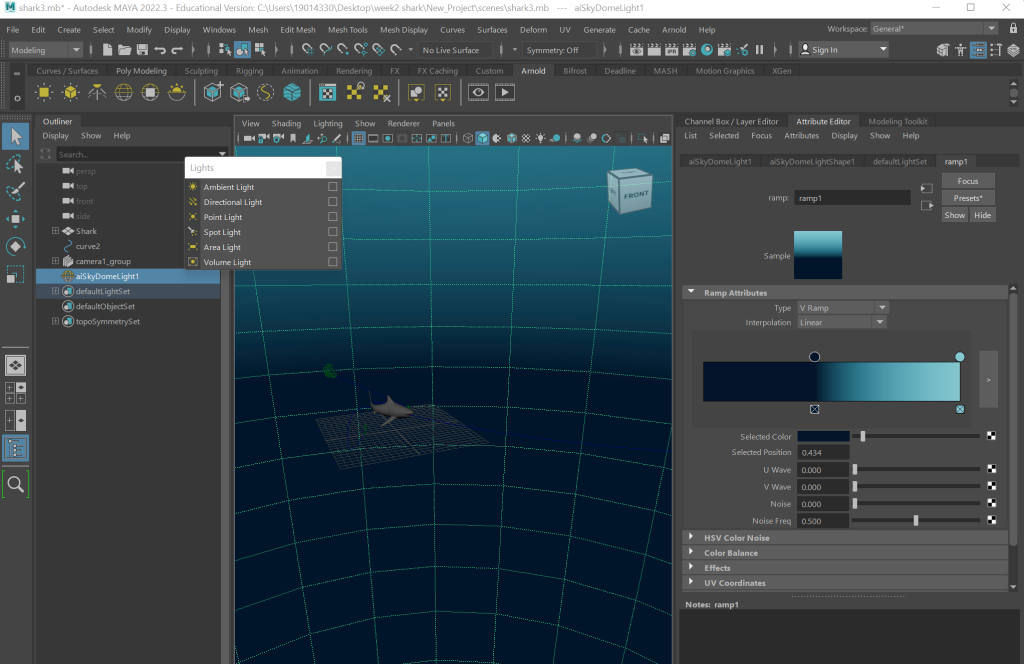 We had a few introductions to the course. I met everyone in the class and had my first class about Maya. Friendred told us about the arrangement of our course. Nick gave us an introduction from polygon modelling to basic animating. Since before the class I only learned a bit basic about modelling in Maya, I was excited to learn the animation interface. The comprehensive teaching gave me a lot of insight as a Maya beginner.