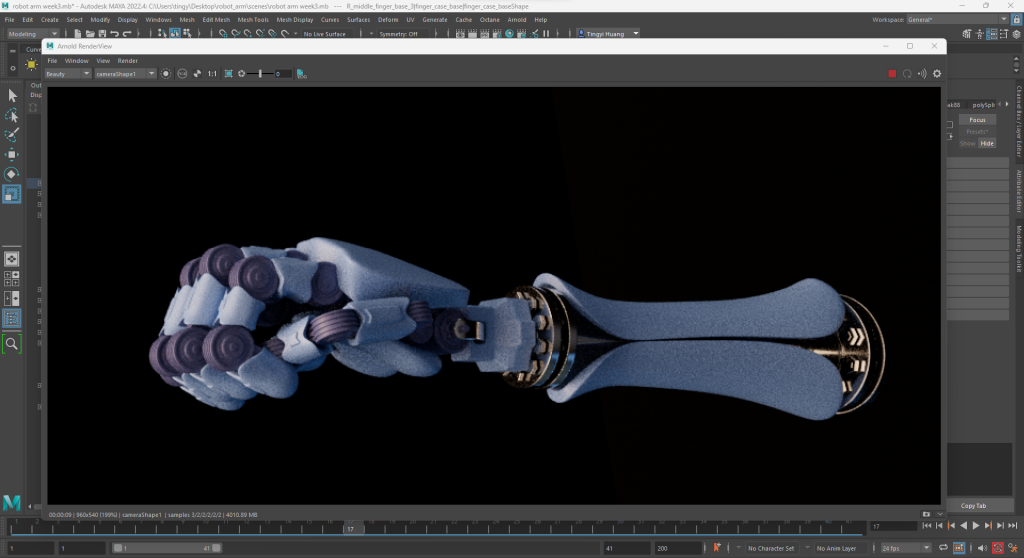Last Nick’s session was very helpful and insightful on both fundamental hard surface modelling and animating. The fun I had following his teaching made want to develop more on the mechanical model. This week’s session is about modelling the palm of the hand. Firstly Nick taught us to organize and name the model. It’s a very necessary process because model with the right name is very crucial for rigging.
